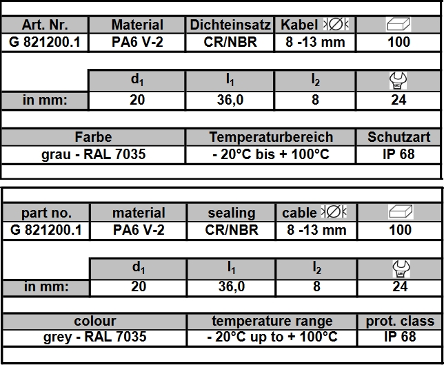 metrisches Anschlussgewinde, M 20 x 1,5 N
