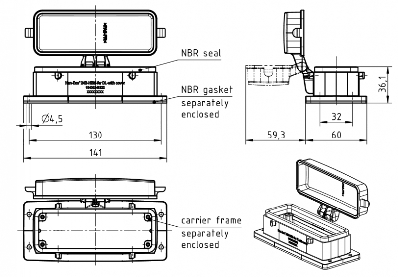 Han-Eco B 24B Anbaugehäuse mit Kunststoffkappe, Querbügel tüllenseitig