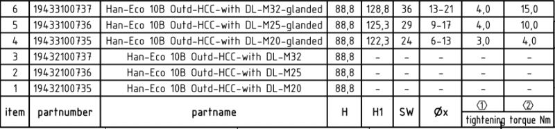Han-Eco B 10B cable to cable housing
