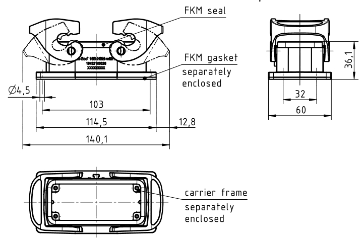 Han-Eco B 16B Bulkhead mounted housing, outdoor, double locking lever