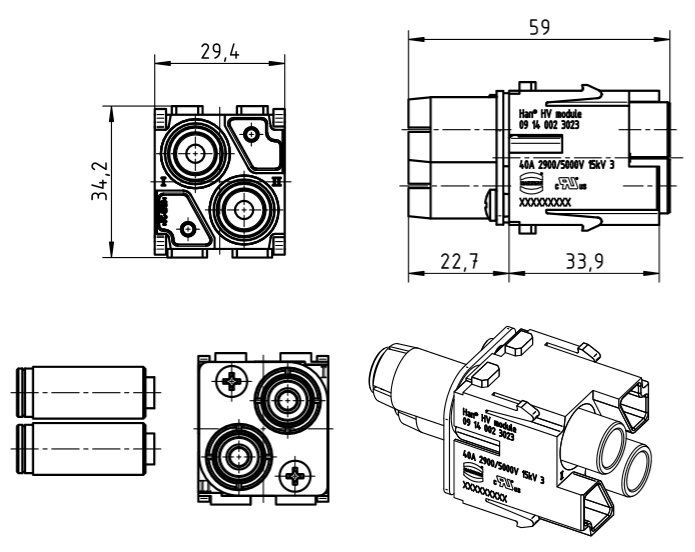wire gauge 0,14 - 1,5 mm˛ for Han D