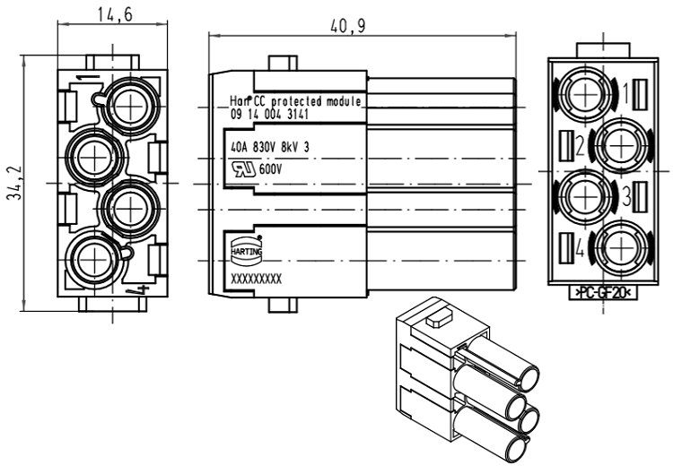 Han CC protected module female, 1,5 - 6mm˛, crimp