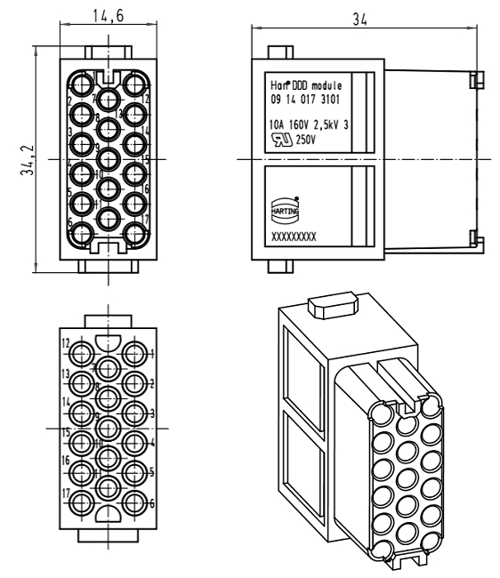 wire gauge 0,14 - 0,37 mm˛, AWG 26 - 22