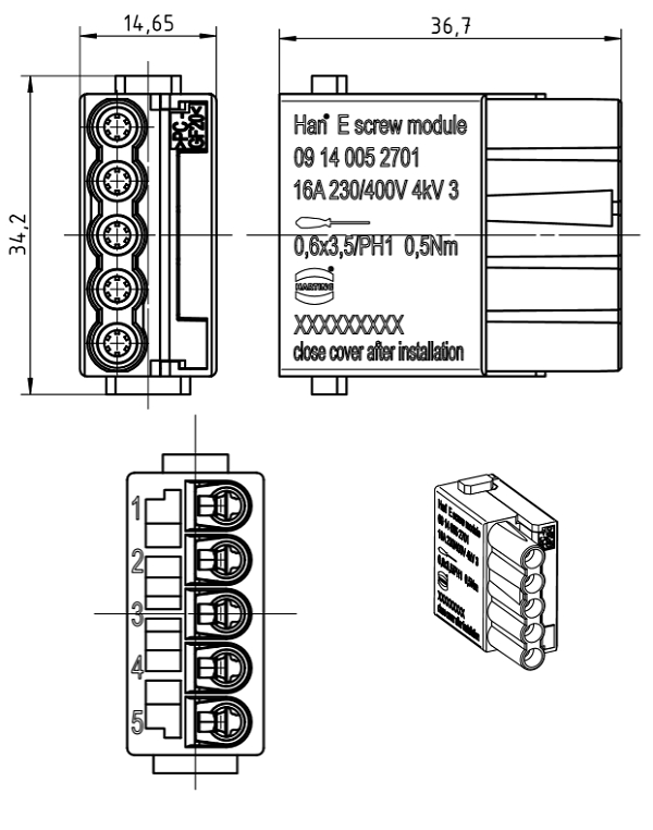 Han E modul female, 0,5 - 2,5mm˛, screw