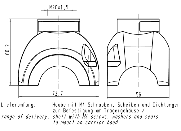 Han-Yellock 30 shell, push button, top entry, 1xM20