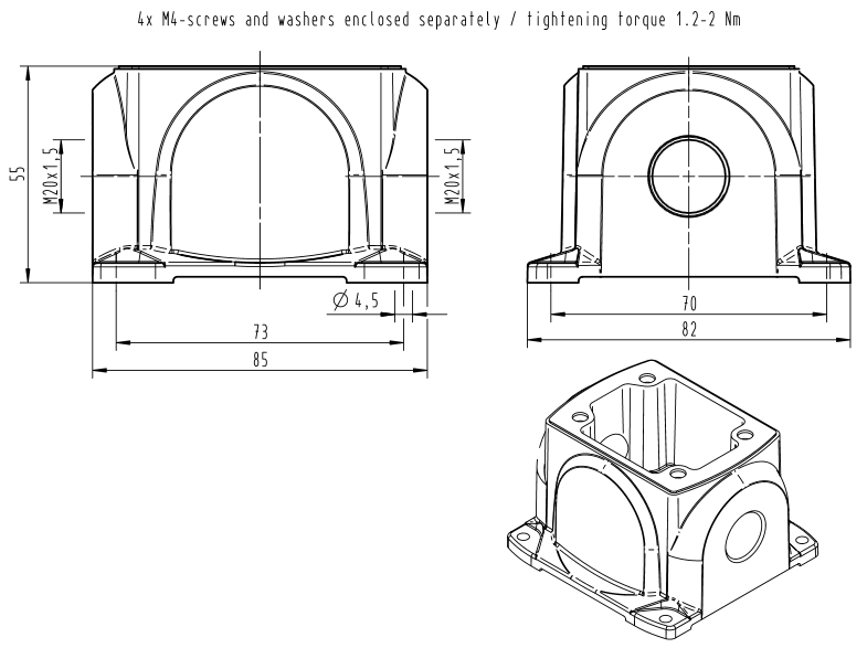 screw locking, side entry, 2xM20