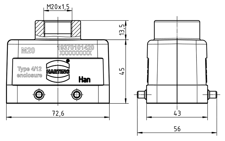 top entry, 1 x M20,