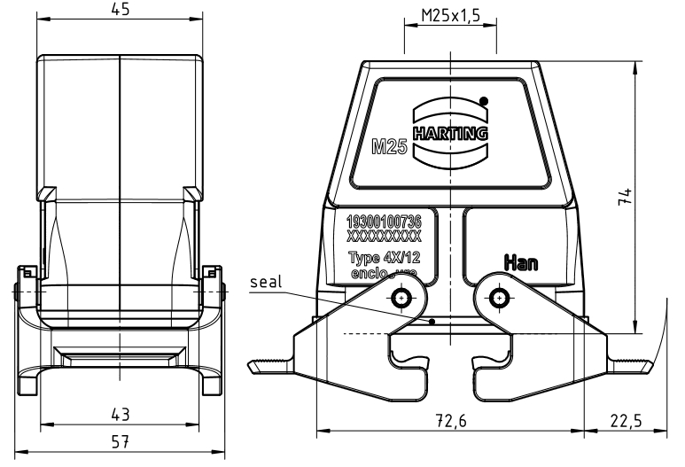 Han-Eco B 10B hood, integr. cable gland, top entry, 1xM25, double locking lever, high construction