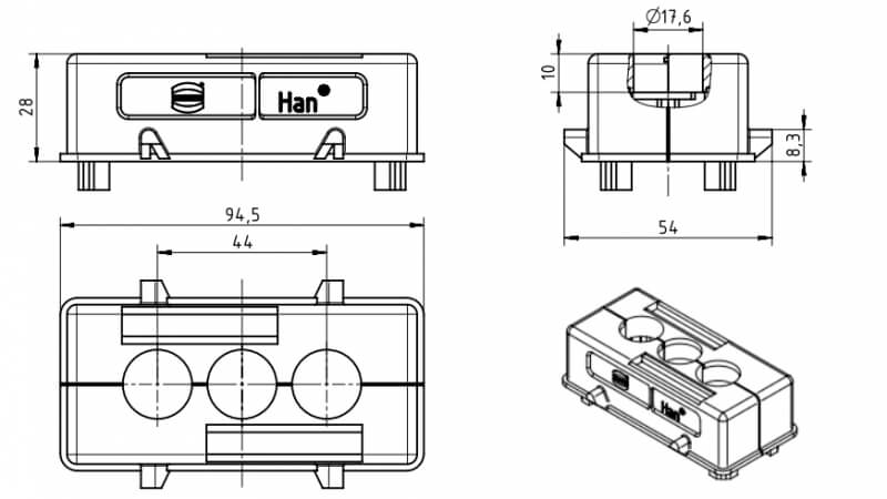 - Degree of protection acc. to IEC 60529 IP 54 when mounted vertically in the longitudinal direction, IP 65