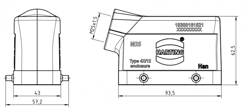 side entry, 1 x M25,