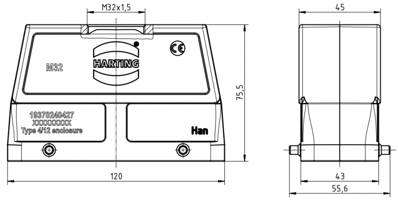 Han M 24B hood, top entry, 1xM32, double locking lever, high construction