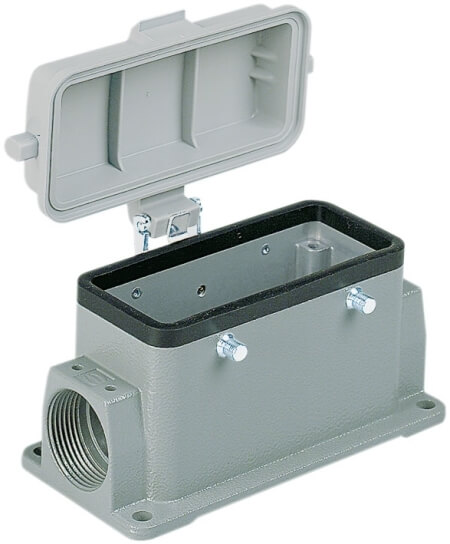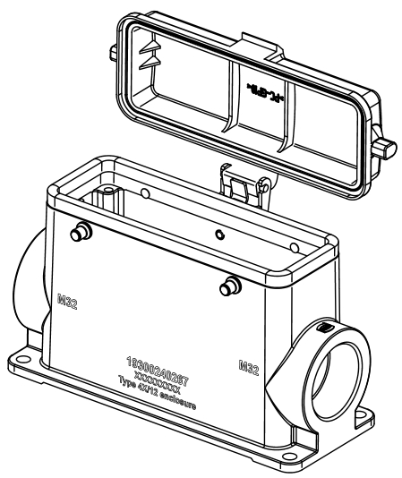 Han 24B surface mounted housing, with thermo-plastic cover, side entry, 1xM32, double locking lever (on the hood), high construction