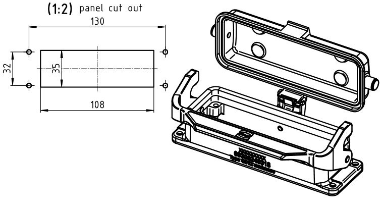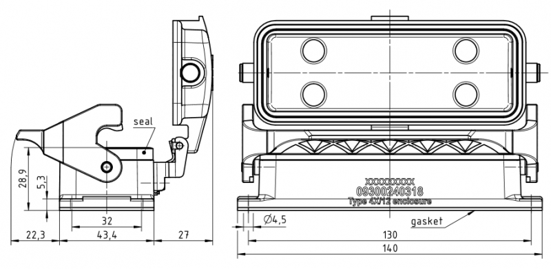 Han 24B bulkhead mounted housing, with metal cover, single locking lever