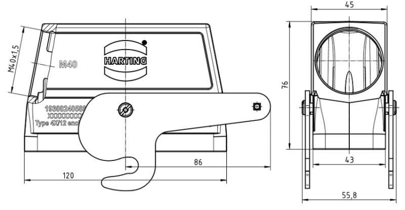 Han 24B hood, side entry, 1xM40, central locking lever (on the hood), high construction