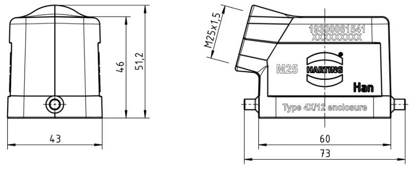 side entry, 1 x M25