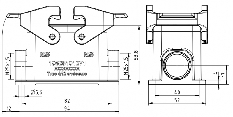 seitlicher Kabeleingang, 2 x M25,