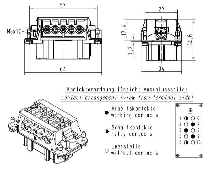 Han Hv E Schraubanschluss, mit Drahtschutz