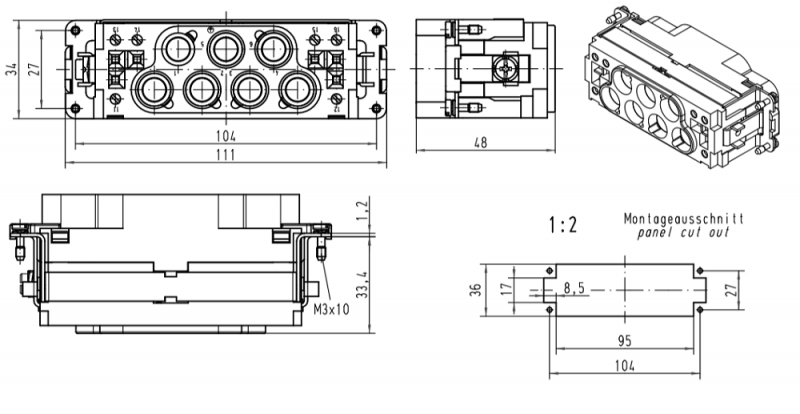 6 Lastkontakte + 6 Signalkontakte + PE, 16 - 35 & 0,2 - 2,5 mm²