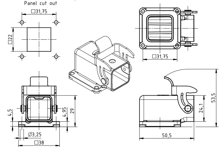 Han 3A Anbaugehäuse gewinkelt, 4 Schrauben