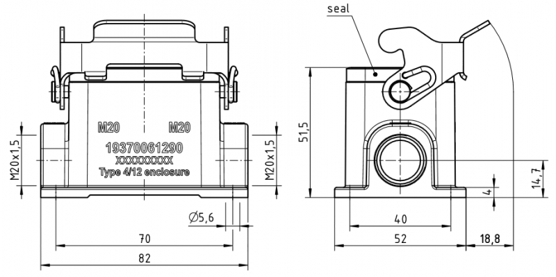 seitlicher Kabeleingang, 2 x M20,