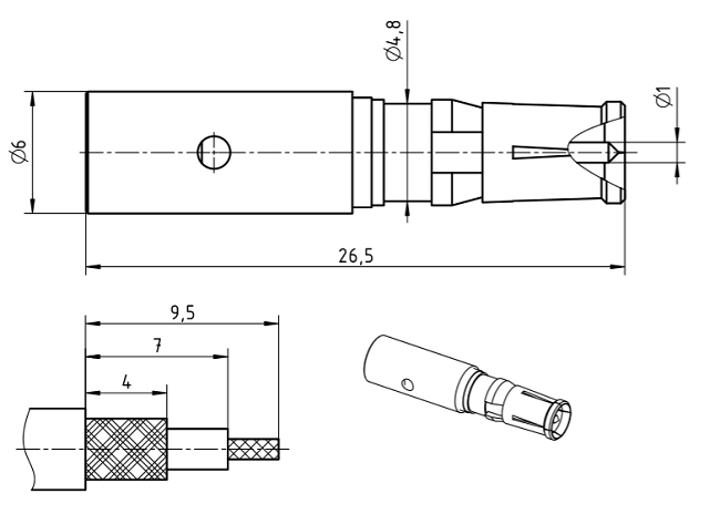 Koaxialstiftkontakt 50 Ohm nach DIN 41626 / D-Sub