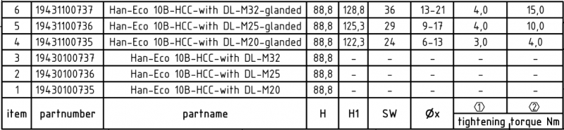 Han-Eco B 10B Kupplungsgehäuse, integr. Kabelverschraubung, gerader Kabeleingang, 1xM32