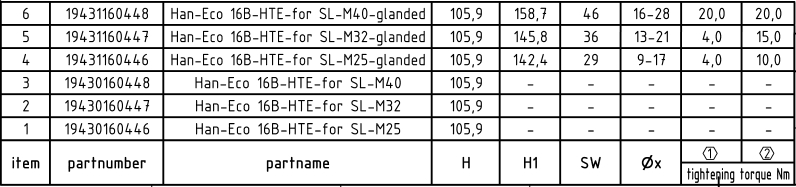 Han-Eco B 16B hood, integr. cable gland, top entry, 1xM32, single locking lever