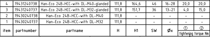 Han-Eco B 24B Kupplungsgehäuse, integr. Kabelverschraubung, gerader Kabeleingang, 1xM32