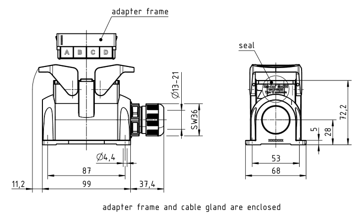 seitlicher Kabeleingang, 1 x M32