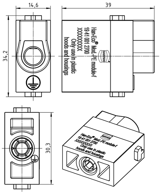 (mit Harting Crimpzange 09990000830 auch Leitungen bis 25 mm² mit Aderendhülse anschließbar)