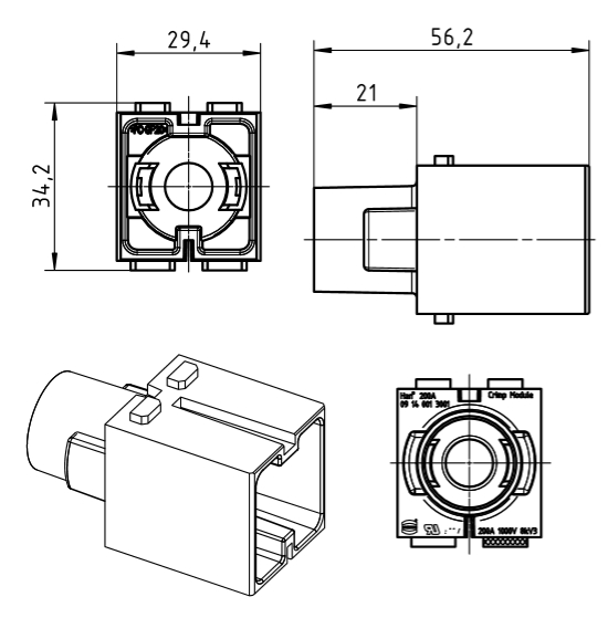 Han 200A Crimp-Modul 200 Stifteinsatz