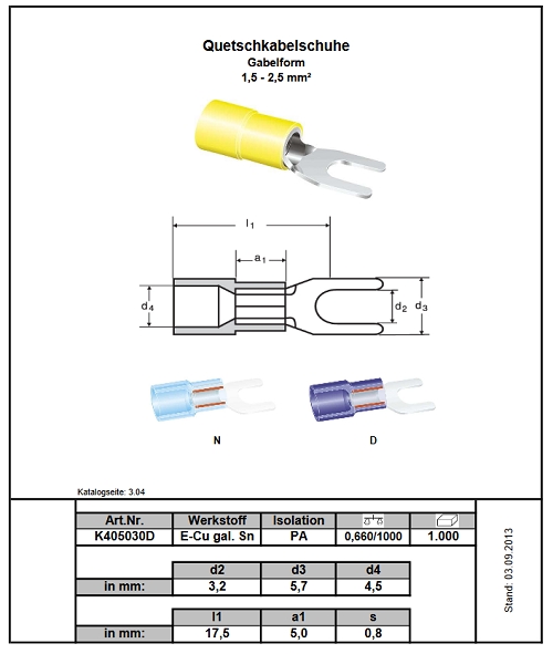 Quetschkabelschuh Gabelform nach DIN 46237 und ähnlich