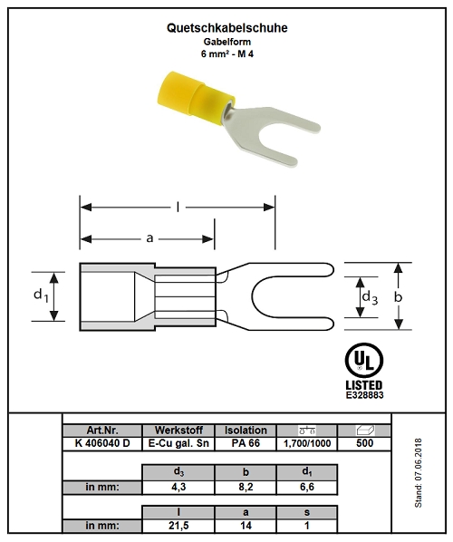 Quetschkabelschuh Gabelform nach DIN 46237 und ähnlich