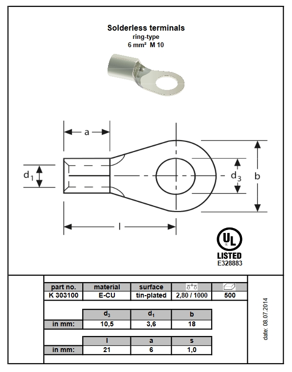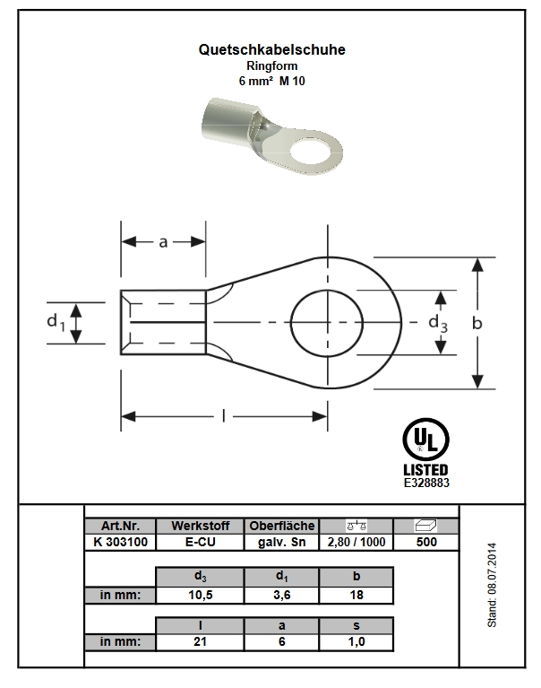 Leiterquerschnitt 4-6 mm²für Bolzen 10 mm