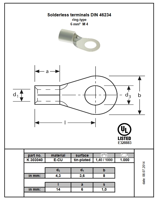 Leiterquerschnitt 4 - 6 mm²für Bolzen 4 mm