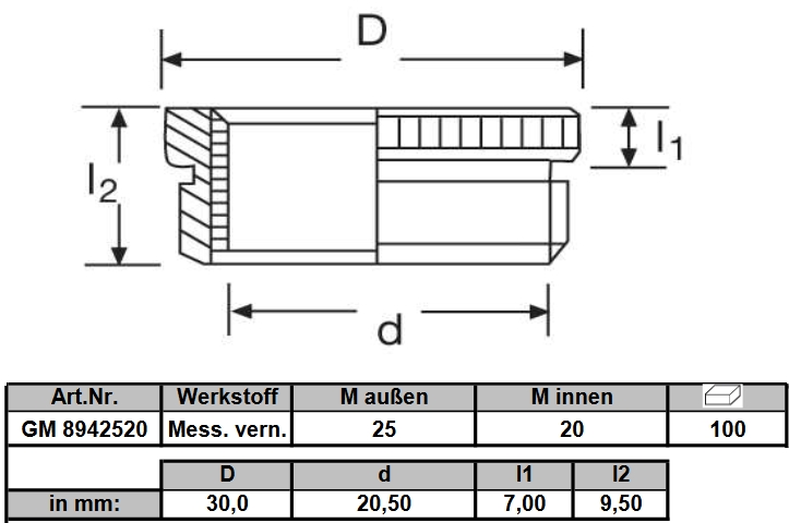 » » » Reduzierung von M25x1,5 auf M20x1,5, gerändelt