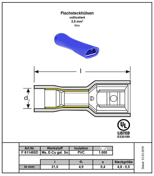 » » » » » Fully insulated Receptacles 4.8 x 0.5
