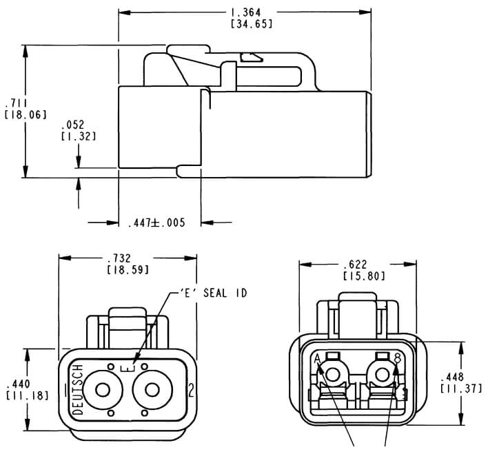 Dieses Buchsengehäuse passt zu allen Modifikationen des Stiftgehäuses DTP04-2P..